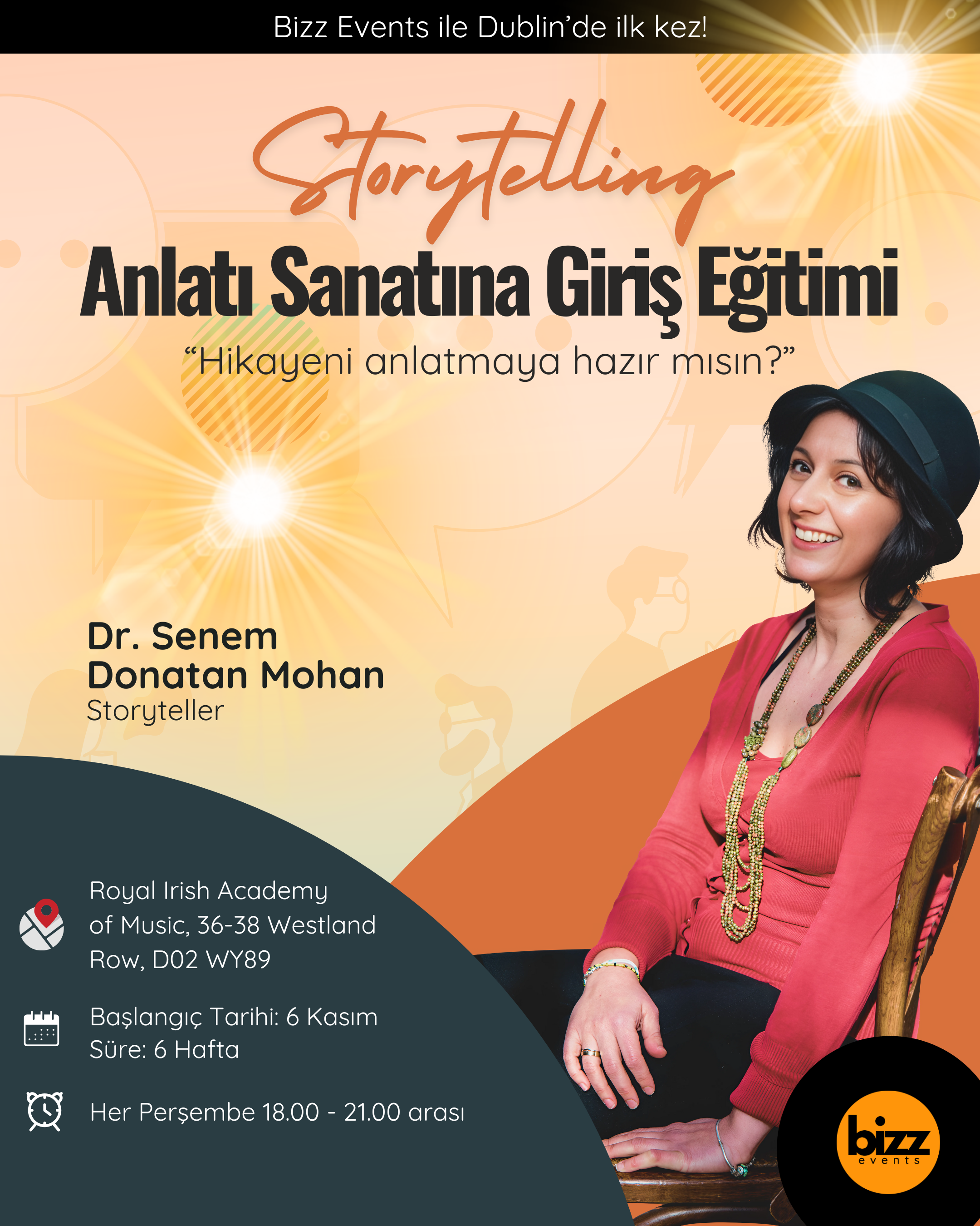 🔥 On Sale Now! “Storytelling – Introduction to the Art of Storytelling” begins 6 Nov at RIAM, Dublin. Led by Dr Senem Donatan Mohan, this 6-week course will boost your imagination, voice, and presence, ending with a live showcase at The Sugar Club!